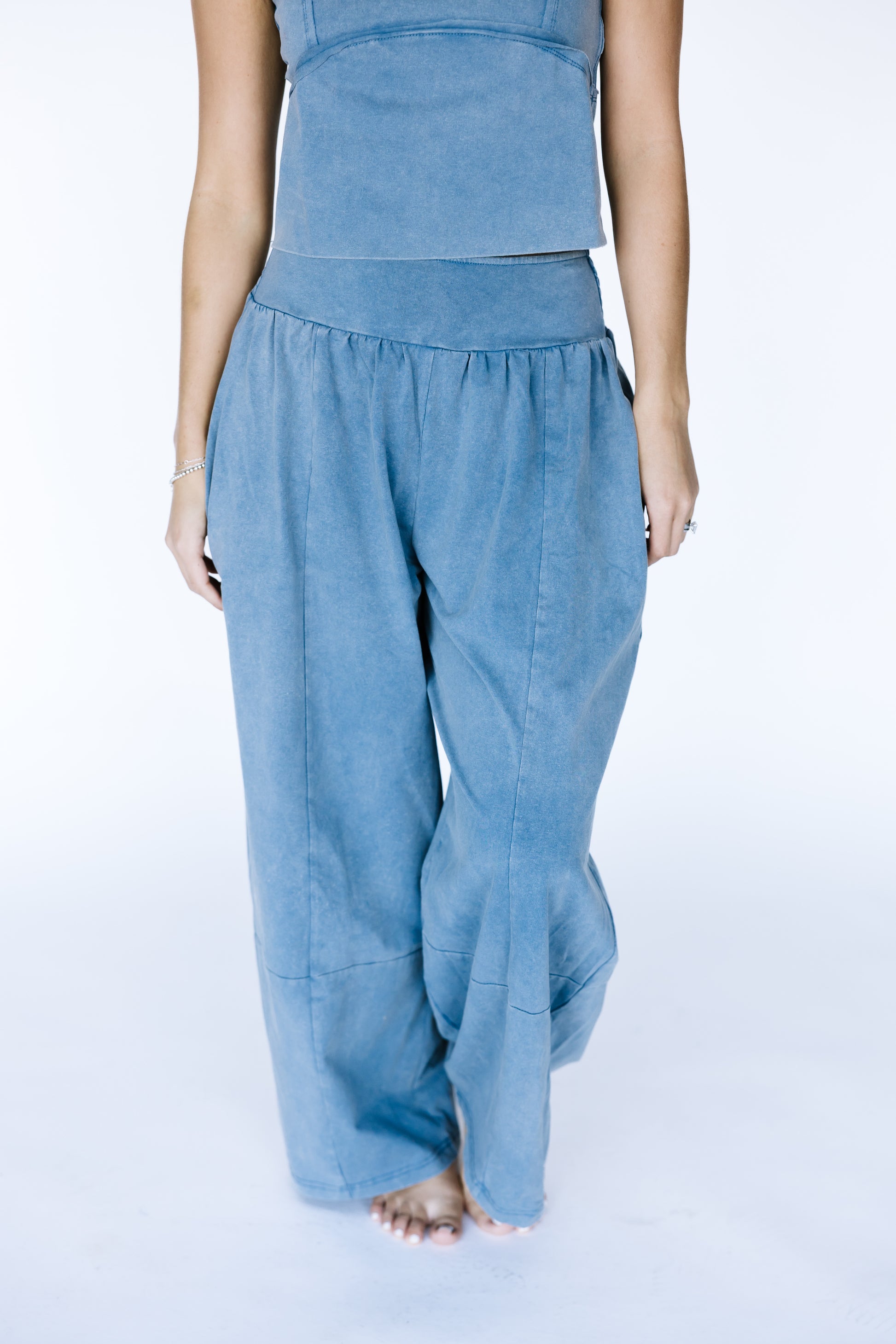 Effortlessly cool and endlessly comfortable, this blue lounge set is the perfect mix of laid-back and chic. Featuring a fitted short-sleeve top with subtle seam detailing and wide-leg lounge pants with a flattering waistband, this set gives major Free People dupe vibes. Crafted from a soft, stretchy fabric that moves with you, it’s ideal for slow mornings, travel days, or casual afternoons out.