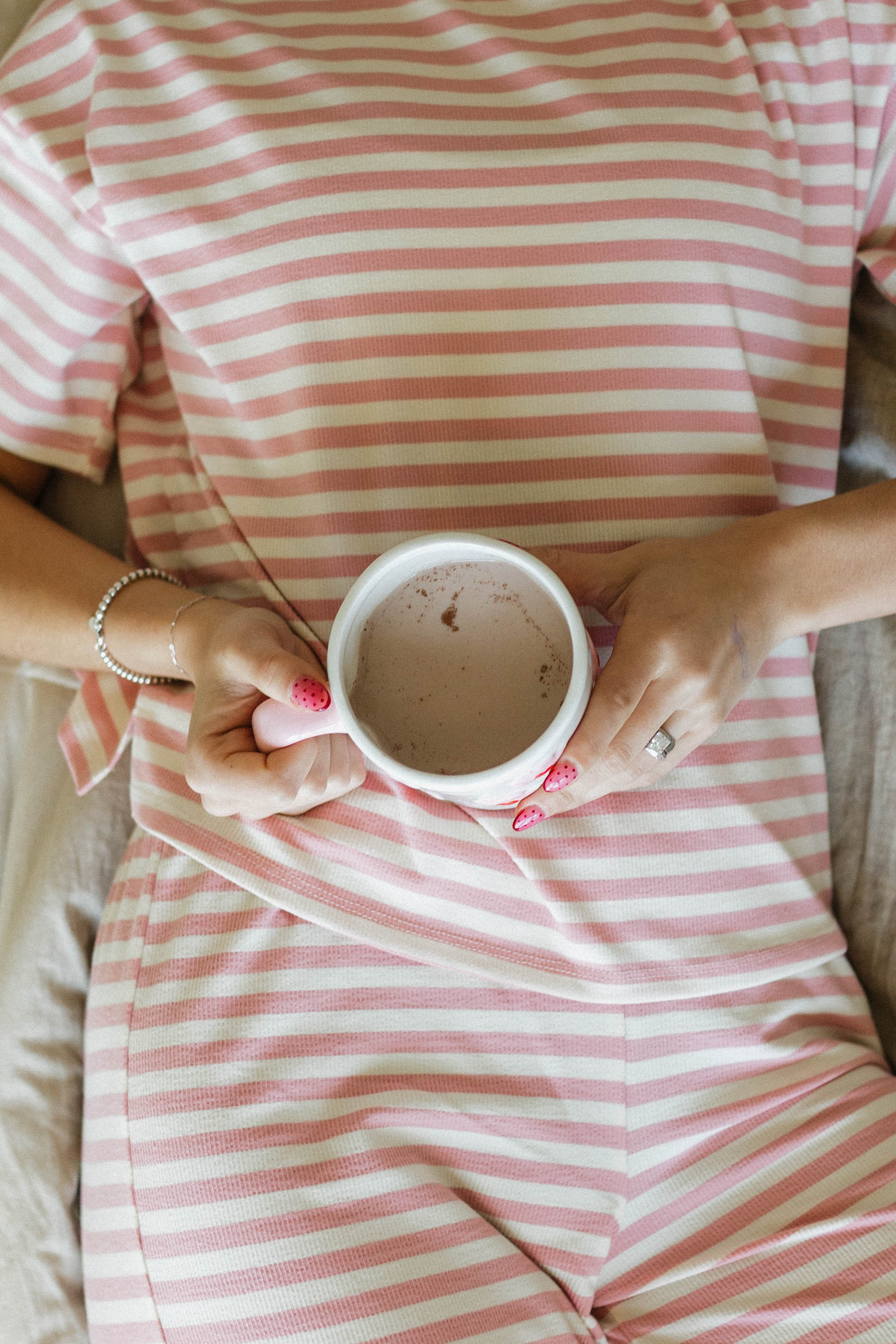 • Soft blush and cream stripe pattern