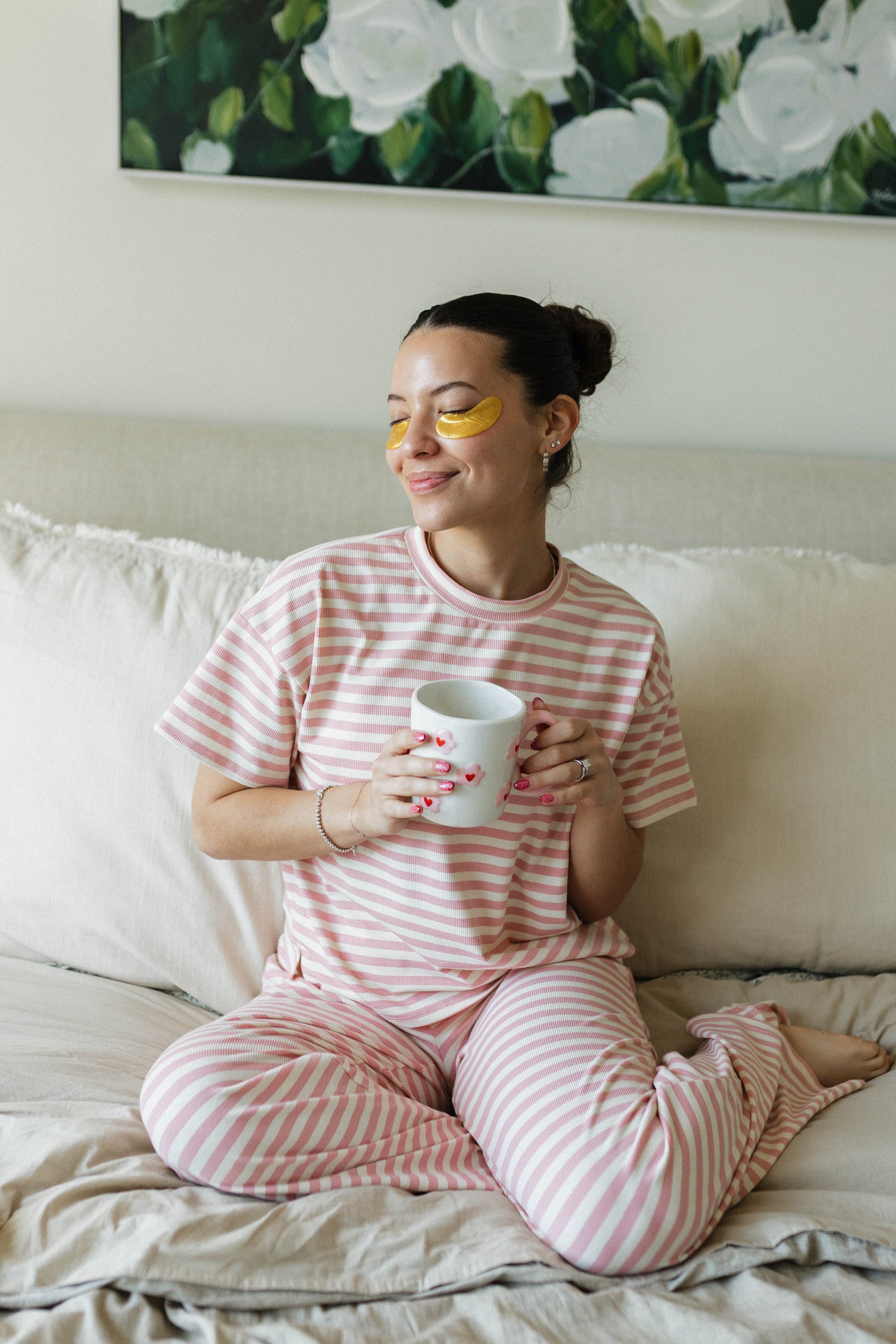 Wrap yourself in effortless comfort with this elevated blush and cream striped lounge set. Featuring a relaxed short-sleeve tee and flowy wide-leg pants, this set is crafted from an ultra-soft, lightweight fabric that drapes beautifully on the body. Designed to feel cozy yet polished, it’s perfect for slow mornings, travel days, or lounging in style.