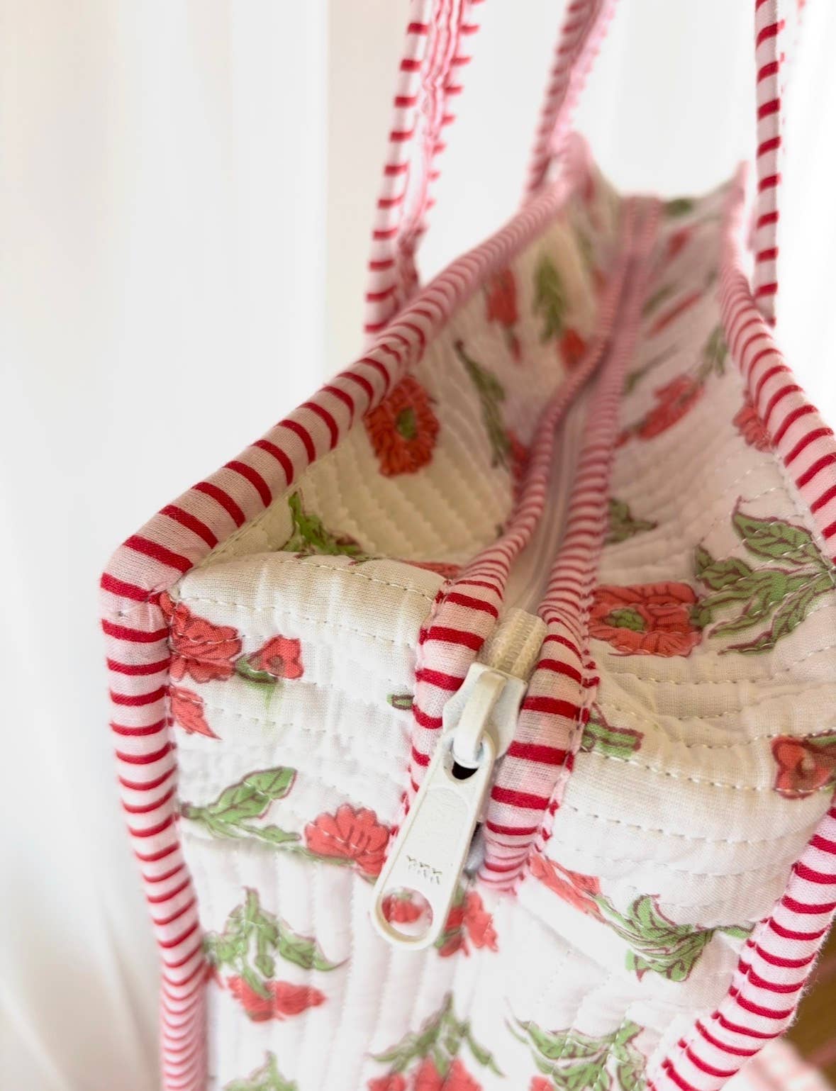 Each piece is hand crafted and block printed by artisans, making it truly one of a kind and filled with timeless charm. The block printing process may have variations in color, printing, and fabric as part of the handmade process which is what makes each product unique.